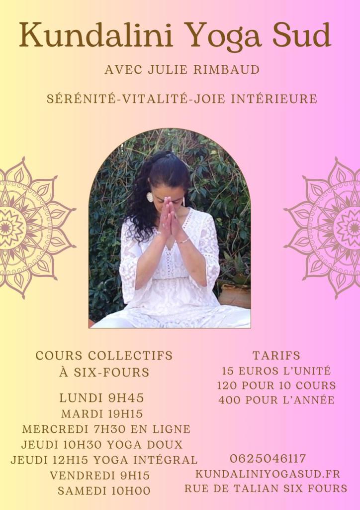 Kundalini yoga et voyage sonore avec Léa dimanche 16 juin à 18H00 Cours à Six fours : Lundi 9h45 Jeudi 9H00 Jeudi 19h15 Vendredi 10h00 Samedi 10h00